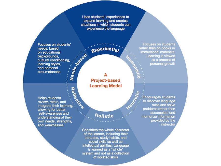 2) A project-based curriculum that involves students in collective learning and functioning in an English-speaking academic and professional environment.
